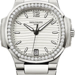 Patek Philippe Nautilus Ladies 33.6mm Silver Index Diamond Bezel Stainless Steel Diamond Set Date | 7018/1A-001