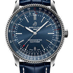 41.0 mm stainless steel case, 10.0 mm thick, non screw-locked crown with two gaskets, blue dial, Breitling 17 self-winding movement, approximately approx. 38 hrs of power reserve, blue alligator leather strap, tang buckle. Water resistant to 3 bars.