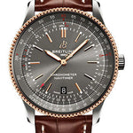 41.0 mm stainless steel and 18K red gold case, 10.0 mm thick, non screw-locked crown with two gaskets, bidirectional slide rule bezel, anthracite dial, Breitling 17 self-winding movement, approximately approx. 38 hrs of power reserve, brown alligator leather strap, tang buckle. Water resistant to 3 bars.