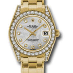 Rolex Yellow Gold Datejust Pearlmaster 34 Watch - 34 Diamond Bezel - White Mother-Of-Pearl Diamond Dial - 81158 md