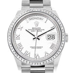 Rolex Day-Date 36 White Dial Diamond Bezel Platinum President Watch 128396TBR