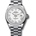 Rolex Platinum Lady-Datejust 28 Watch - 44 Diamond Bezel - White Roman Dial - President Bracelet - 279136RBR wrp