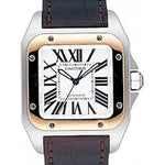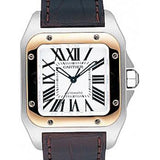 Medium size, stainless steel case with 18K rose gold bezel, silver dial, automatic winding mechanical movement with chronograph function, alligator strap with stainless steel and 18K gold deployant buckle. Water resistant to 100 meters (330 feet).