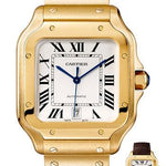 Cartier Santos de Cartier Watch - 39.8 mm Yellow Gold Case - Silvered Dial - Allilgator Strap - WGSA0009