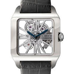 Large size (47.4mm x 38.7mm) 18K white gold case, sapphire back, octagonal crown set with a faceted sapphire, sapphire crystal, nickel silver dial with hours and minutes indicated by skeletonized bridges in the shape of Roman numerals, sword-shaped blued-steel hands, manual winding calibre 9611 MC movement, alligator strap with 18K white gold double adjustable deployant buckle. Water resistant to 30 meters.