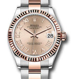 31mm Everose Rolesor case comprised of Oystersteel and 18K Everose gold, screw-down back, screw-down crown with twinlock double waterproofness system, 18K Everose gold fluted bezel, scratch-resistant sapphire crystal with cyclops lens over the date, rose dial, Roman numerals, Rolex calibre 2236 perpetual self-winding movement with date at 3 o'clock, approximately 55 hours of power reserve, Eversose Rolesor Oyster bracelet made from a combination of steel and 18K everose gold with flat three-piece links, folding Oysterclasp buckle with Easylink 5mm comfort extension link. Waterproof to 100 meters. Baselworld 2019 release.