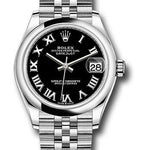 31mm Oystersteel case, screw-down back, screw-down crown with twinlock double waterproofness system, domed bezel, scratch-resistant sapphire crystal with cyclops lens over the date, black dial, Roman numerals, Rolex calibre 2236 perpetual self-winding movement with date at 3 o'clock, approximately 55 hours of power reserve, Oystersteel Jubilee bracelet with five-piece links, concealed folding Crownclasp buckle. Waterproof to 100 meters.