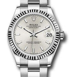 Rolex Steel and White Gold Datejust 31 Watch - Fluted Bezel - Silver Index Dial - Oyster Bracelet - 278274 sio