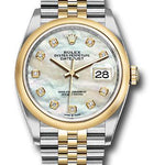 Rolex Steel and Yellow Gold Rolesor Datejust 36 Watch - Domed Bezel - White Mother-Of-Pearl Diamond Dial - Jubilee Bracelet - 126203 mdj