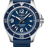 42.00 mm steel case, 13.30 mm thick, screw-locked crown with two gaskets, unidirectional ratcheted bezel, cambered sapphire crystal with glareproof treatment on both sides, blue dial, Breitling 17 self-winding movement, approximately approx. 38 hrs of power reserve, blue diver pro III strap, pushbutton folding buckle. Water resistant to 500 m (1,650 ft).