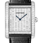 34.3mm x 44.1mm by 9.8mm thick 18K rhodiumized white gold case set with baguette-cut diamonds, sapphire crystal back, octagonal crown set with a brilliant-cut diamond, sapphire crystal, 18K rhodiumized white gold dial set with baguette-cut diamonds, blued steel sword-shaped hands, caliber 1904-AU MC automatic winding movement, black alligator leather strap, rhodiumized white gold double adjustable deployant buckle set with baguette-cut diamonds. Water resistant to 30 meters.