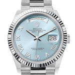 Rolex Day-Date 36 Ice Blue Roman Dial Fluted Bezel Platinum President Watch 128236