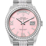 Rolex Day-Date 36 Pink Opal Diamond Dial Diamond Bezel White Gold Diamond President Watch 128349RBR